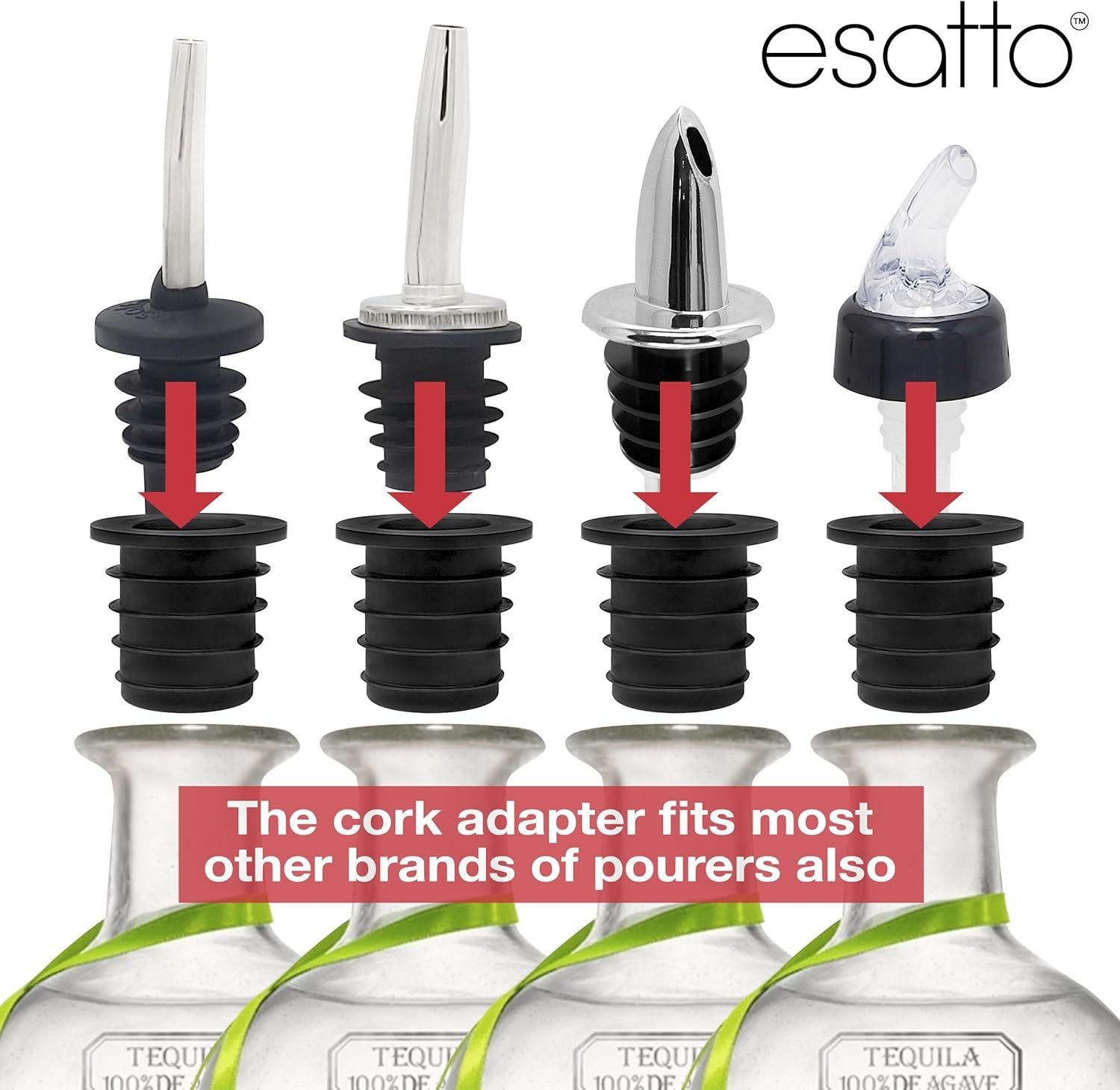 12 Pack Classic Chromed Bottle Pourers, Liquor Pourers for Alcohol, Olive Oil, Bartender Accessories Includes 4 Liquor Pourer Adapters for Large Neck Bottles such as Patron Don Julio Tequila