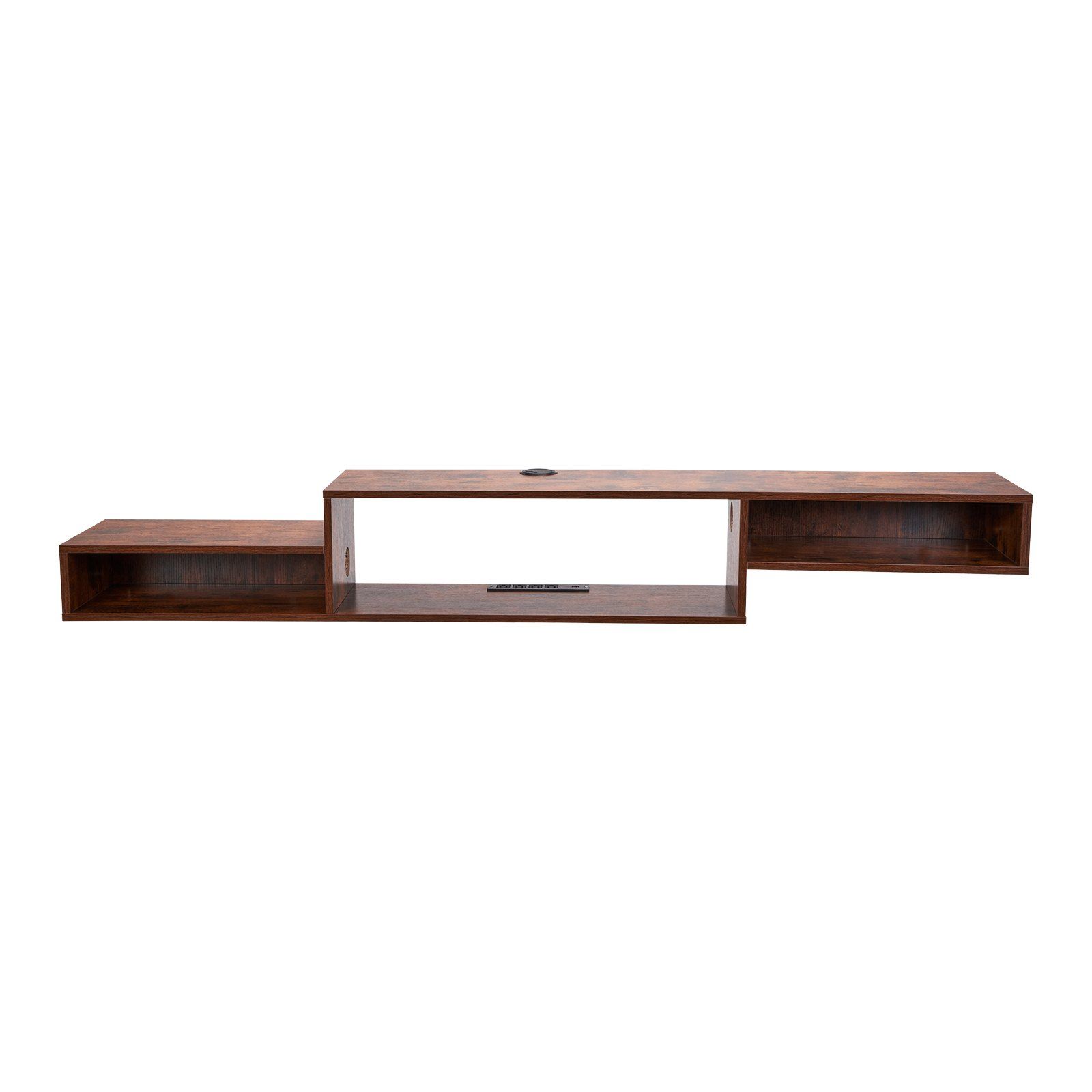 Equipped with 4 AC outlets and 2 USB ports, this floating TV stand meets the power needs of your TV and other devices. The 3-column, 1-layer storage compartments provide tidy space to easily organize your router and more. The cable holes are designed to hide wires, keeping your space neat.
