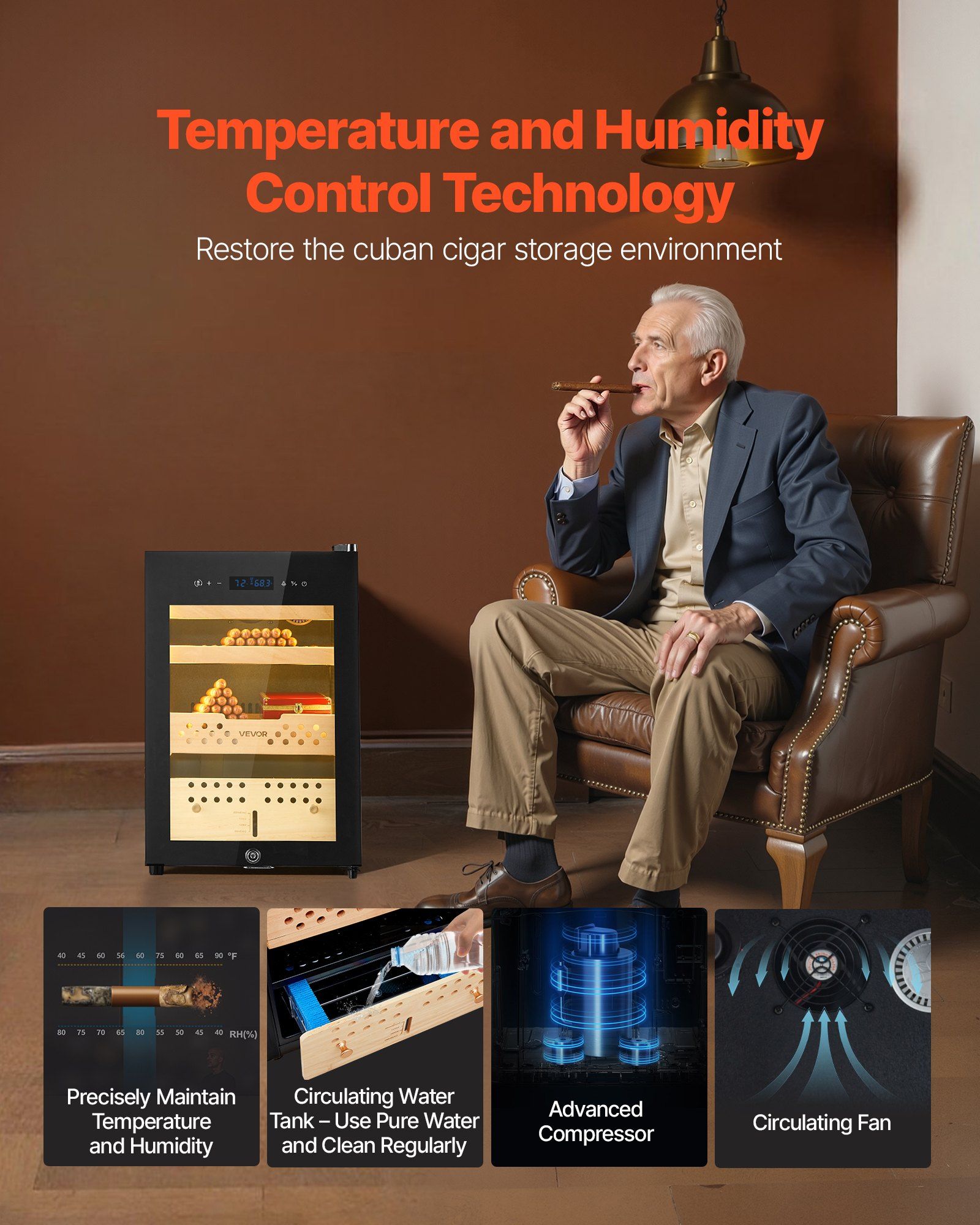 Electric Humidor, 60L, 350 Counts Electric Cigar Humidor Cabinet with Compressor Cooling, Constant Humidity & Temperature Control Electric Humidor, 60L, 350 Counts Electric Cigar Humidor Cabinet with Compressor Cooling, Constant Humidity & Temperature Control Electric Humidor, 60L, 350 Counts Electric Cigar Humidor Cabinet with Compressor Cooling, Constant Humidity & Temperature Control
