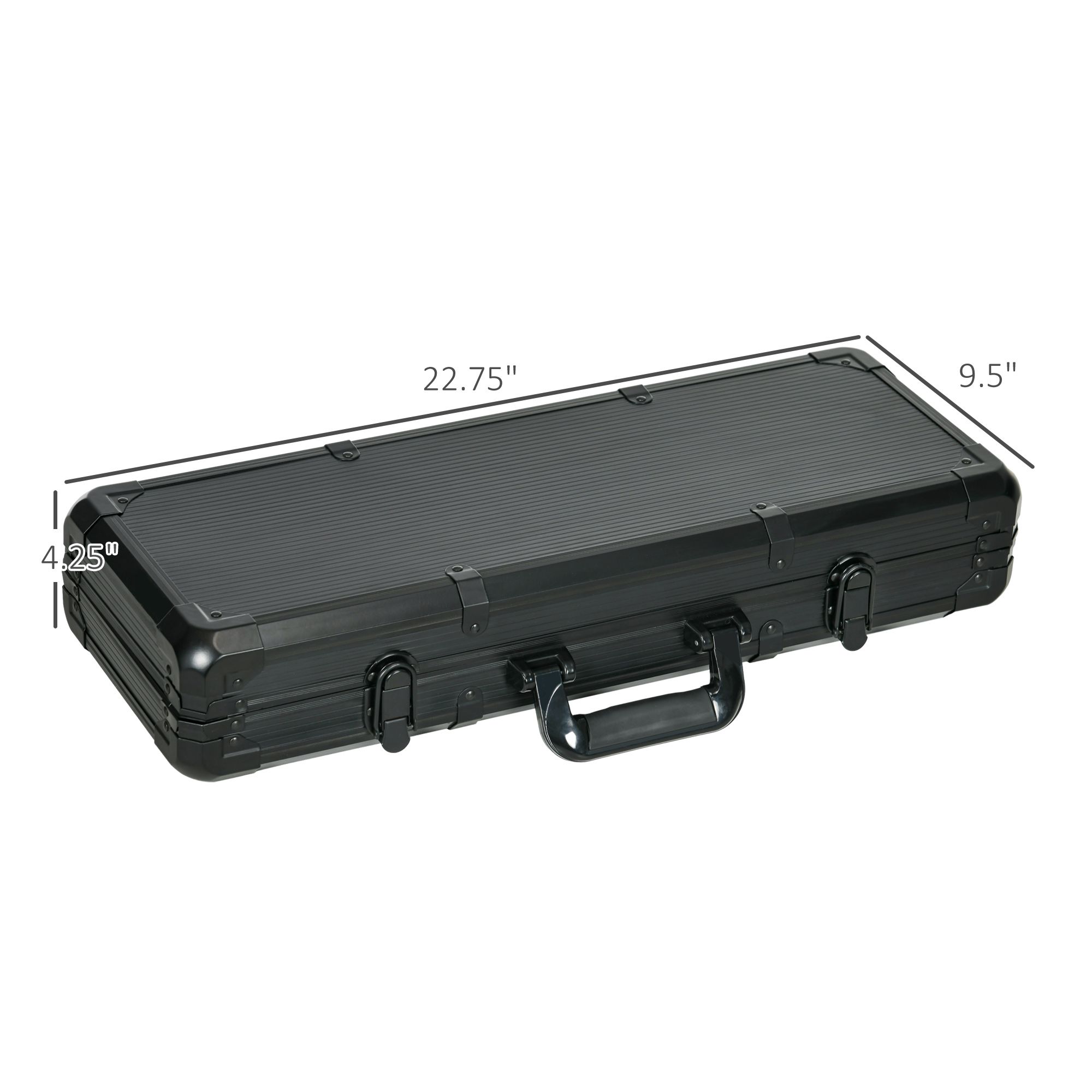 - - It has a robust aluminum case featuring foam cushioning inserts and a velvet-touch chip holder