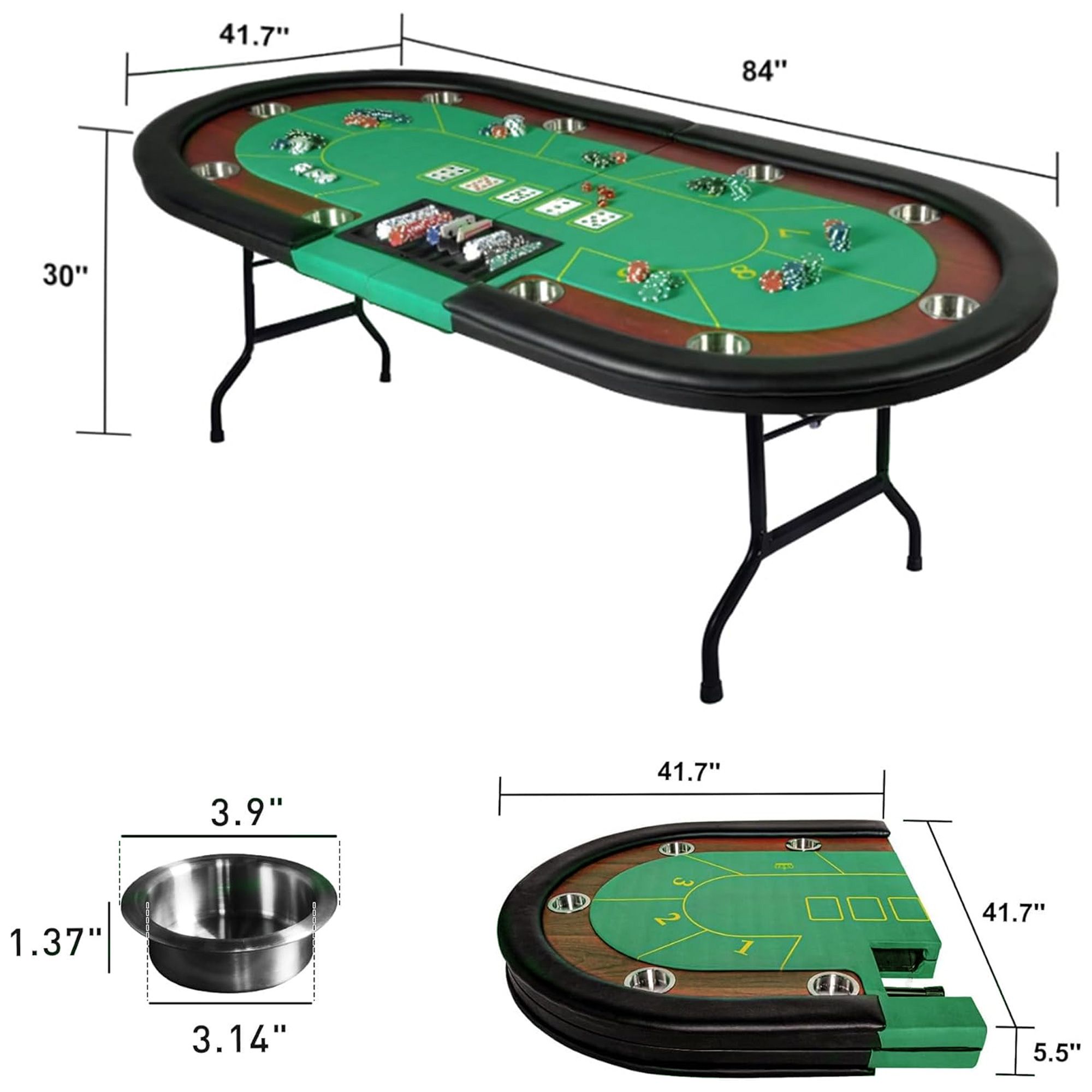 1.For 10 Players: The folding poker table can accommodate up to 10 people to play poker together, providing you and your friends with great leisure time. Equipped with 10 stainless steel cup holders, it provides players with convenience and reduces water and beverage mess.