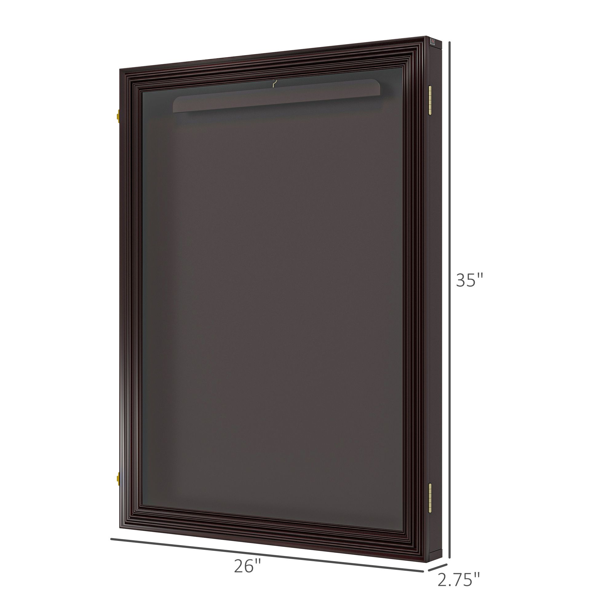 26" x 35" Shadow Box Frame, UV-Resistant Jersey Display Case with T-shirt Hanger and 2 Keys, Brown