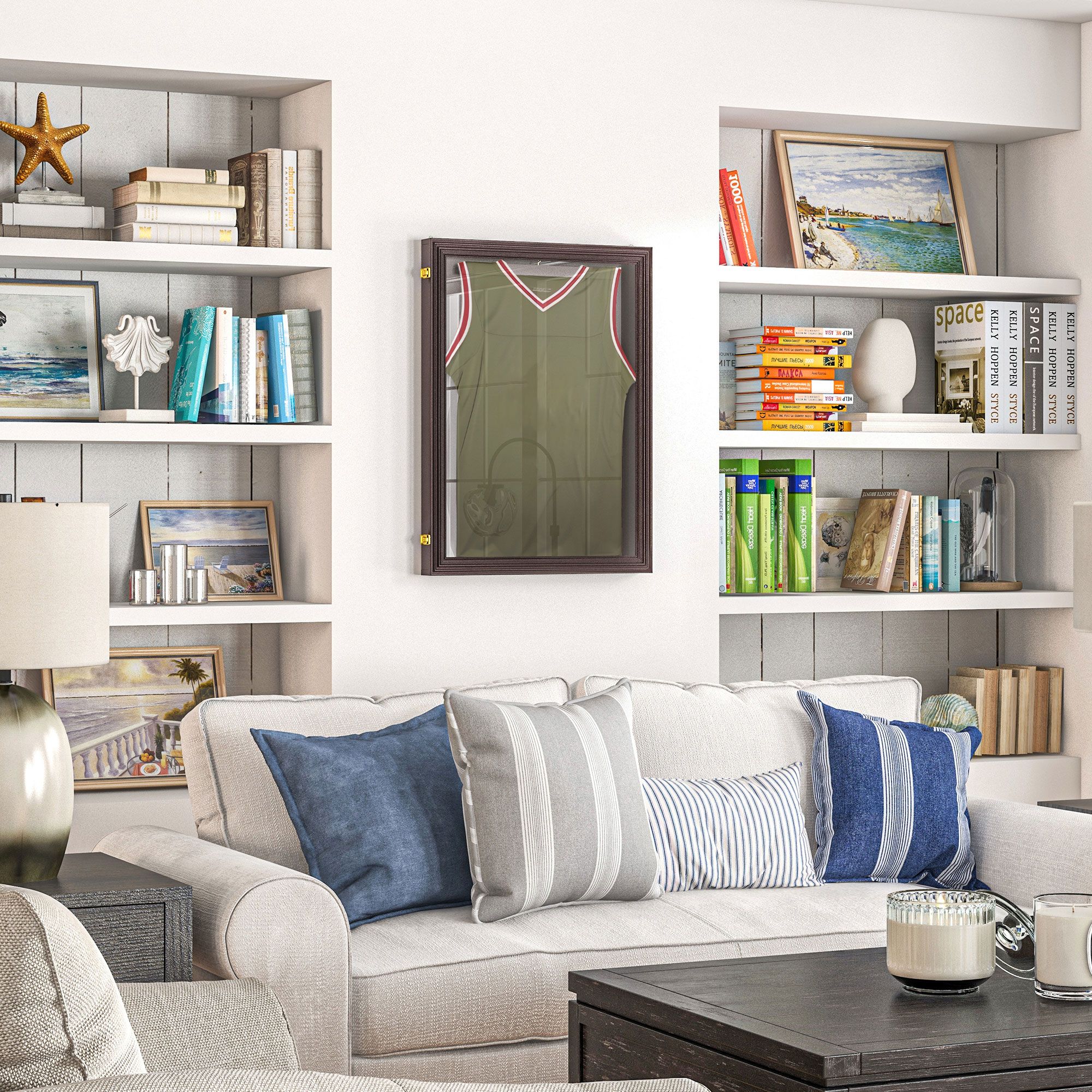 The HOMCOM jersey frame display case is great for storing and displaying your prized sports memorabilia. Our display case offers an elegant, attractive appearance without sacrificing protection. It features an acrylic door with two built-in magnets and a lockable latch. This door keeps dust away and protects against harmful UV rays. It features a hanger inside and brass hooks on the back, making it easy to display your favorite sports memorabilia immediately.