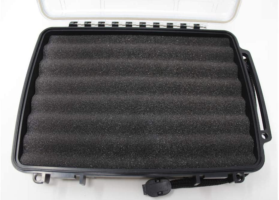 HUMI-SMART TRAVEL HUMIDOR Our low profile, crush proof, waterproof, and airtight case will protect your most precious cigars.  Holds up to 7 – 50 ring gauge cigars.  Two latches ensure your case does not accidentally open, and ensuring if it falls in the water it will float.  The low profile design makes it easy to carry in your bag right next to your favorite book.